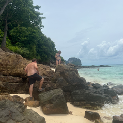 Nous sommes censés maintenant aller voir la plage sur laquelle a été tourné le film "la plage", puis le coucher de soleil dans un spot avec du plancton bioluminescent, mais notre guide nous annonce qu'on doit faire demi tour car la mer commence à être de plus en plus agitée. Au bout de quelques minutes, nous voyons des bateaux y aller quand même et nous décidons tous de les suivre ! Les vagues sont en effet très très grosses (je pense que nous avons eu des creux de 2 mètres !!) et nous avons beaucoup ri !! Arrivés dans la crique de la "plage" nous prenons quelques photos et repartons. Mais pour le coup, la mer est vraiment agitée, le soleil caché par les nuages, nous décidons donc tous ensemble de rentrer.